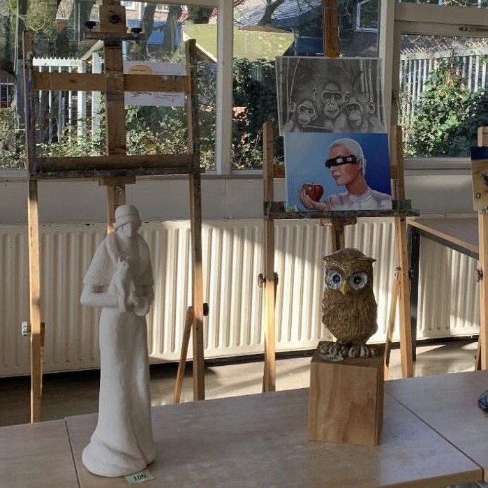 Meerdere keren per jaar nodigen we een bekende kunstenaar uit om het werk van onze leden te bespreken. Daarnaast organiseren we jaarlijks een grote ledententoonstelling. Een mooie kans om je werk te laten zien aan het publiek.